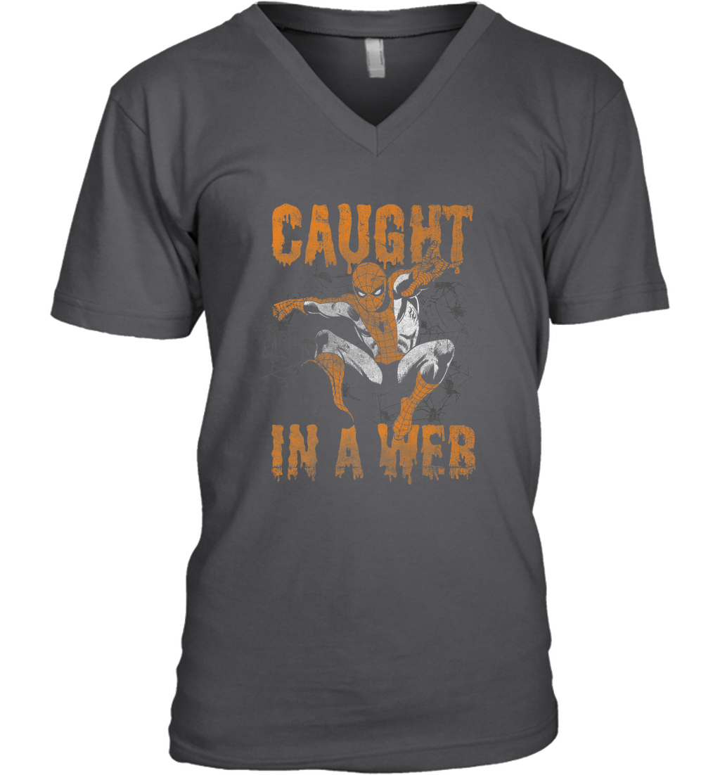 Marvel Spider Man Caught In A Web Halloween Men's V-Neck