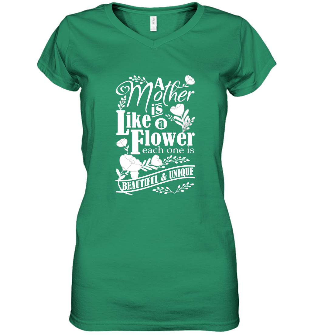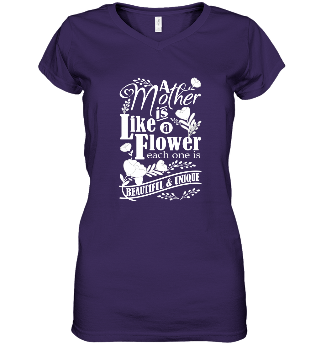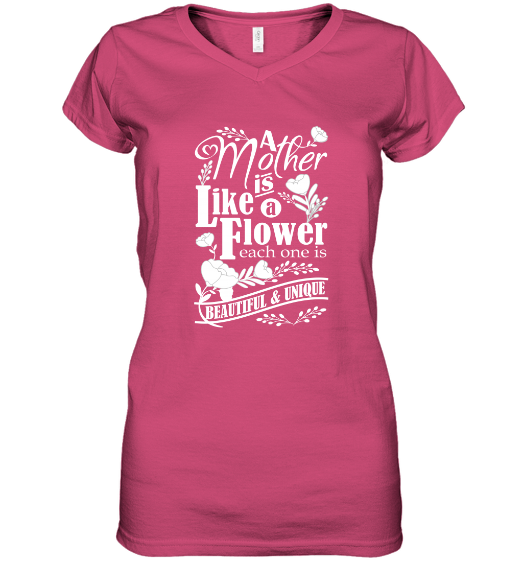 A mother is like a flower each one is beautiful and unique Women's V-Neck T-Shirt